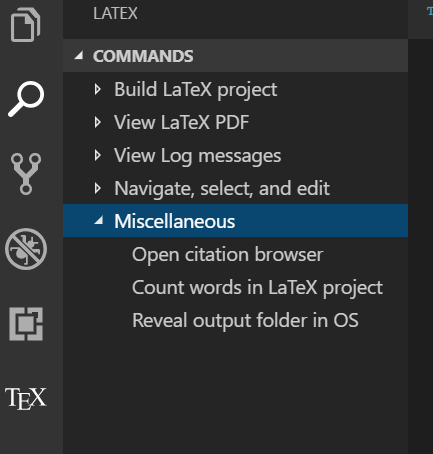 2.按Ctrl+S 完成编译加保存功能,此时VScode左侧会出现Tex标志,说明环境配置成功。