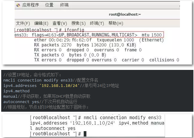输入ifconfig查看网卡信息。一块物理网卡可以有多个配置文件,但只能启用其中一个,可以看到ens或eno开头的网卡。