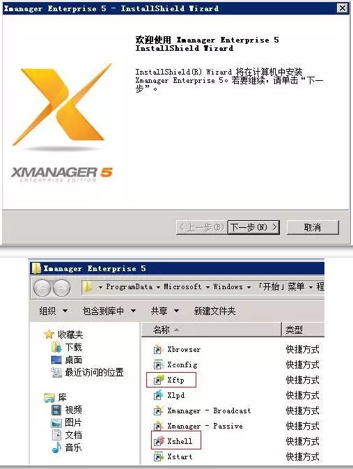 下载并安装Xmanager Enterprise 5,安装过程也是一路的下一步。完成安装后打开桌面的快捷方式即可看到Xmanager所包含的一系列产品,这里我们主要使用Xftp和Xshell,Xftp能够完成Windows和linux之间的文件传输。Xshell能够提供Windows SSH访问,能轻松和安全地从Windows PC上访问Linux主机。