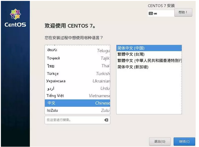 a. 在WM中启动虚拟机,稍等一会儿即可进入语言选择界面,默认是英语,可选择中文。