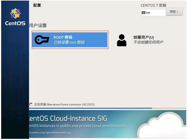 c、 为ROOT设置密码,等待安装完成后重启即可。