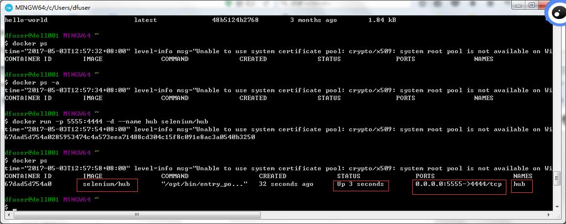运行的镜像名字叫做selenium/hub