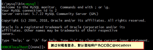 [mysqld]下添加一行skip_grant_tables表示跳过权限表。 - 再执行mysql服务启动,就是无权限管理的连接了。极不安全,只适用于个人测试或学习环境。