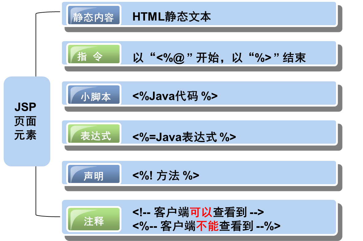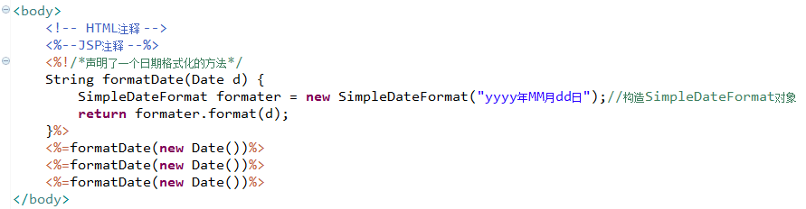 注意:HTML注释在JSP文件被编译后保留,JSP注释则被丢弃。重要信息的注释不要使用HTML注释。
