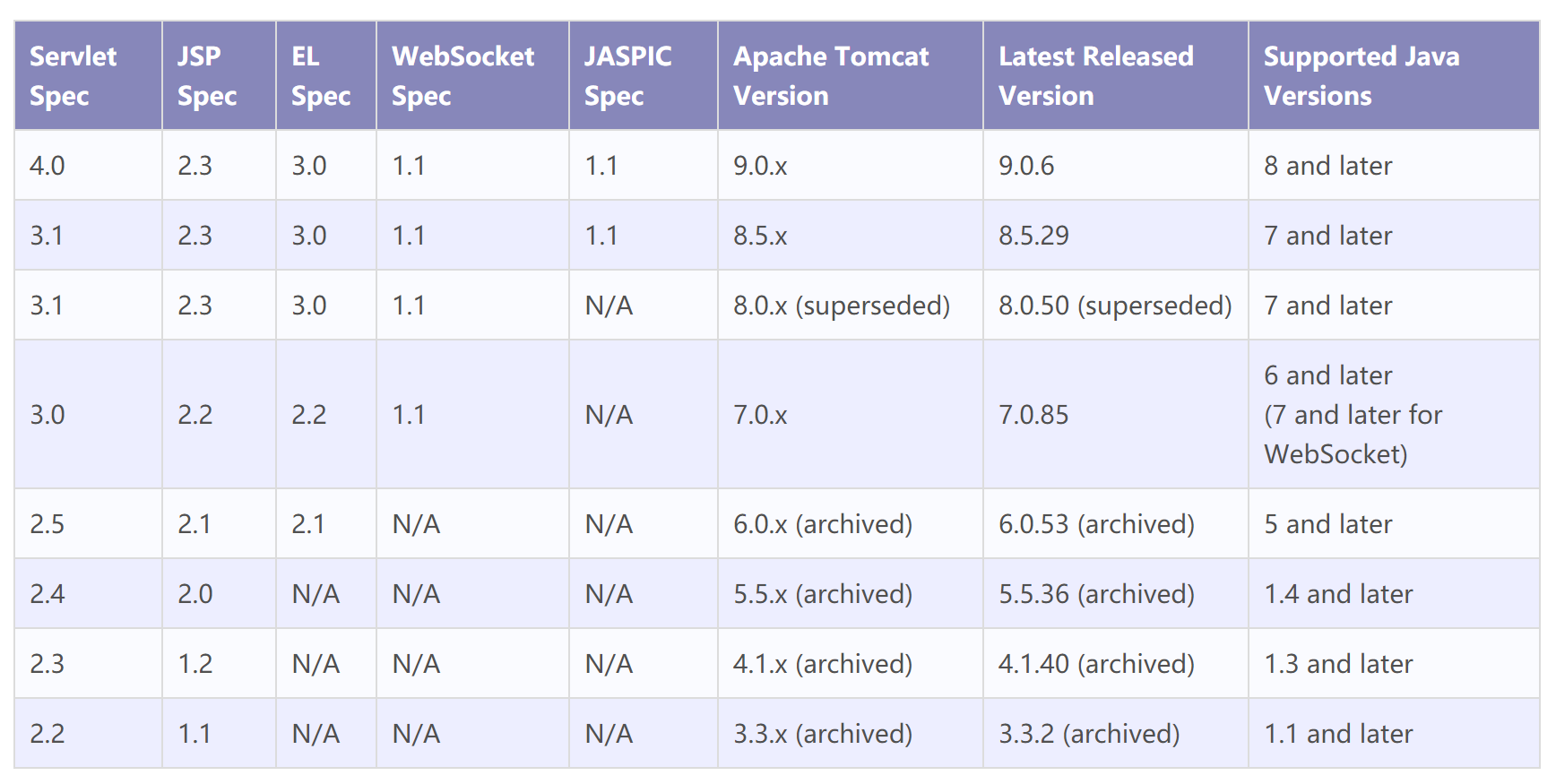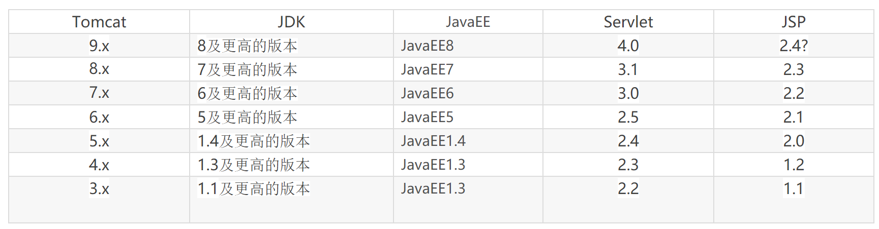 Tomcat、JDK、JavaEE、Servlet版本间的配套关系