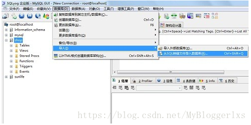 在SQLyog软件中创建好数据库-->创建好数据库后进行sql文件的导入-->选择sql文件所在的位置-->刷新