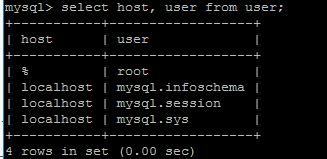 4.1修改mysql数据库下的user表中host的值