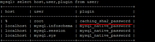 update user set plugin='mysql_native_password' where user='root';
