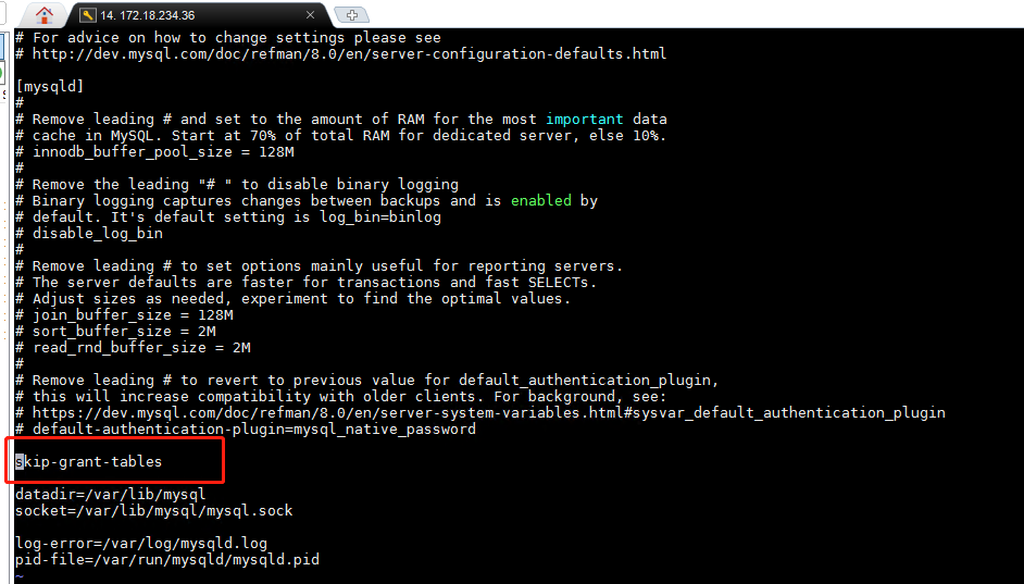 8.4退出mysql,在配置文件中注释跳过mysql权限
