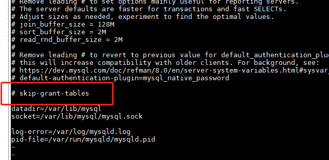 在配置文件中加入,skip-grant-tables 跳过mysql权限