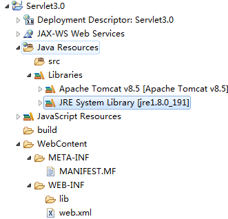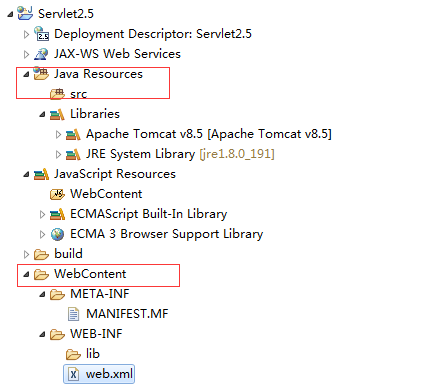 - 一个是WebContent :一般用来存放html、js、css等文件;