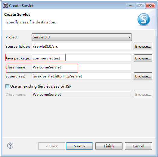 4、使用Eclipse创建一个Servlet类,位于包com.servlet.test下,名称为WelcomeServlet