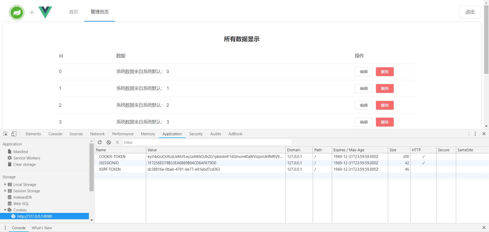页面设计这些没有什么可写的了,需要注意的一点就是在对后端服务器进行 POST,DELETE,PUT 等操作时,请在请求头中带上 "X-XSRF-TOKEN": this.$cookies.get('XSRF-TOKEN'),如果不带,那么哪怕你登陆了,后台也会返回 403 异常的。