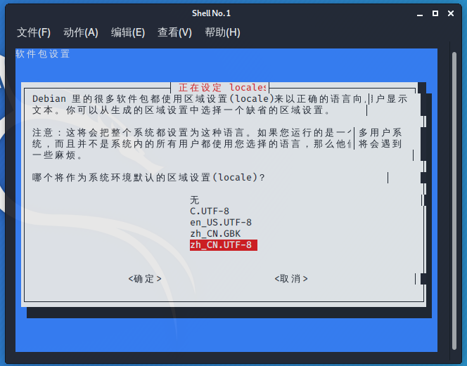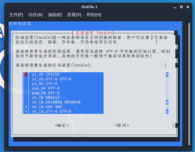 选中 en_US.UTF-8、zh_CN.GBK、zh_CN.UTF-8,确定后,将zh_CN.UTF-8 选为默认。