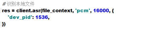 第四个参数: dev_pid 音频文件语言id 默认1537(普通话 输入法模型)