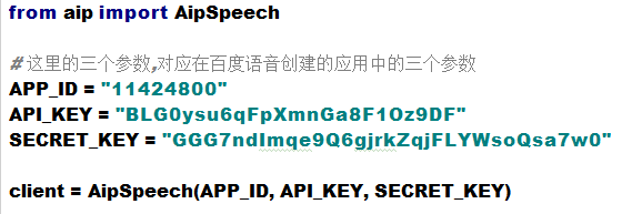 AipSpeech 是百度语音的客户端 认证成功之后,客户端将被开启,这里的client 就是已经开启的百度语音的客户端了