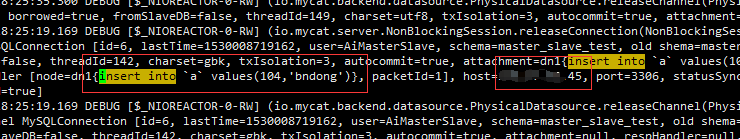可以看到读和写分别走两个服务器。至此,读写分离和主从配置完毕!