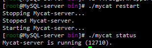 注:mycat支持的命令{ console | start | stop | restart | status | dump }
