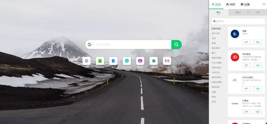 功能强大的新建标签页扩展,界面精美,每日提供高清壁纸,有同步笔记、代办事项等功能,同时,提供了很多常用网站的图标,用起来还是挺舒服的。