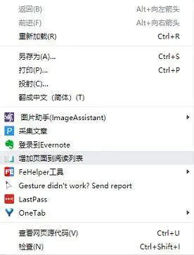 右键增加至阅读列表,它会保存一个链接列表,类似于书签,以方便以后阅读,同时可减少书签数量,一般用保存文章比较好,列表文章过多时还可以通过搜索找到想找的文章。