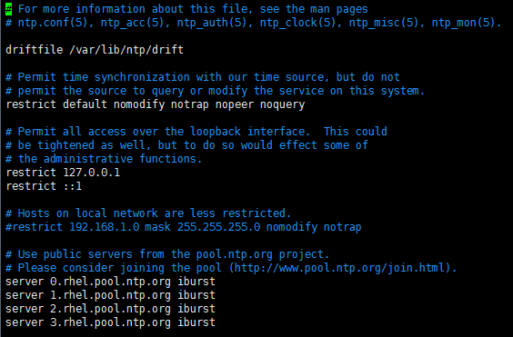 ntpd根据配置文件的参数决定是要为其他服务器提供时钟服务或者是从其他服务器同步时钟。所有的配置都在/etc/ntp.conf文件中。