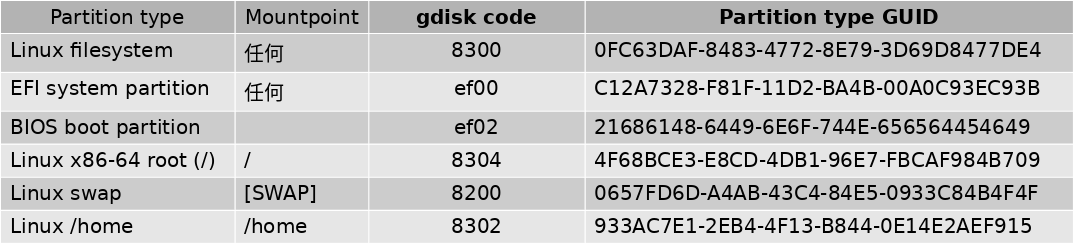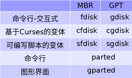 • gdisk(变体:cgdisk,sgdisk),GPT格式分区工具。