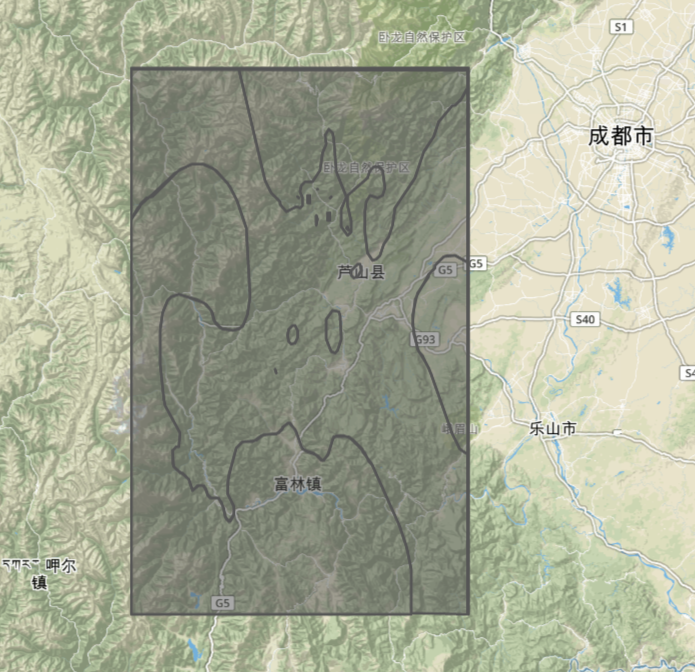 最后可以将生成的等值线JSON 贴入这里来看看效果http://geojson.io/#map=8/29.893/102.651