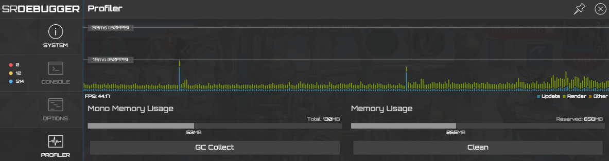 SRDebugger可以监控整个项目的内存使用信息,手动卸载资源,手动进行GC垃圾回收。