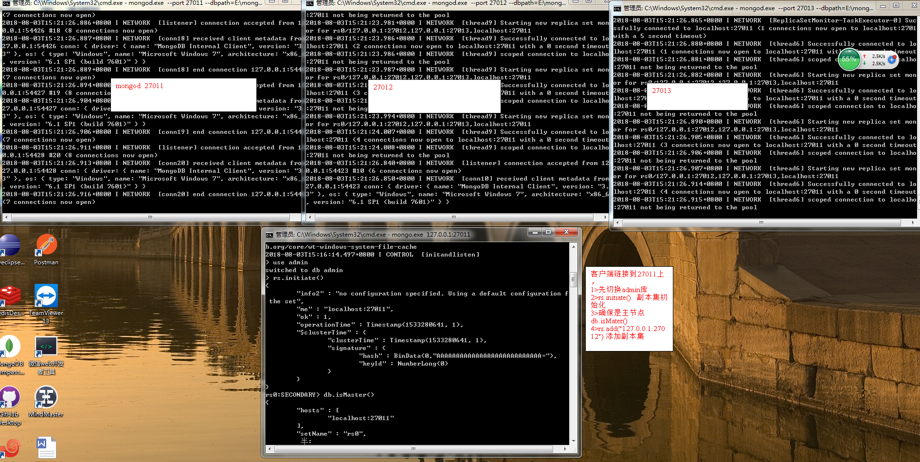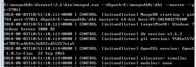 mongod.exe --port 27011 --dbpath=E:\mongodbRs\db1 --replSet rs0