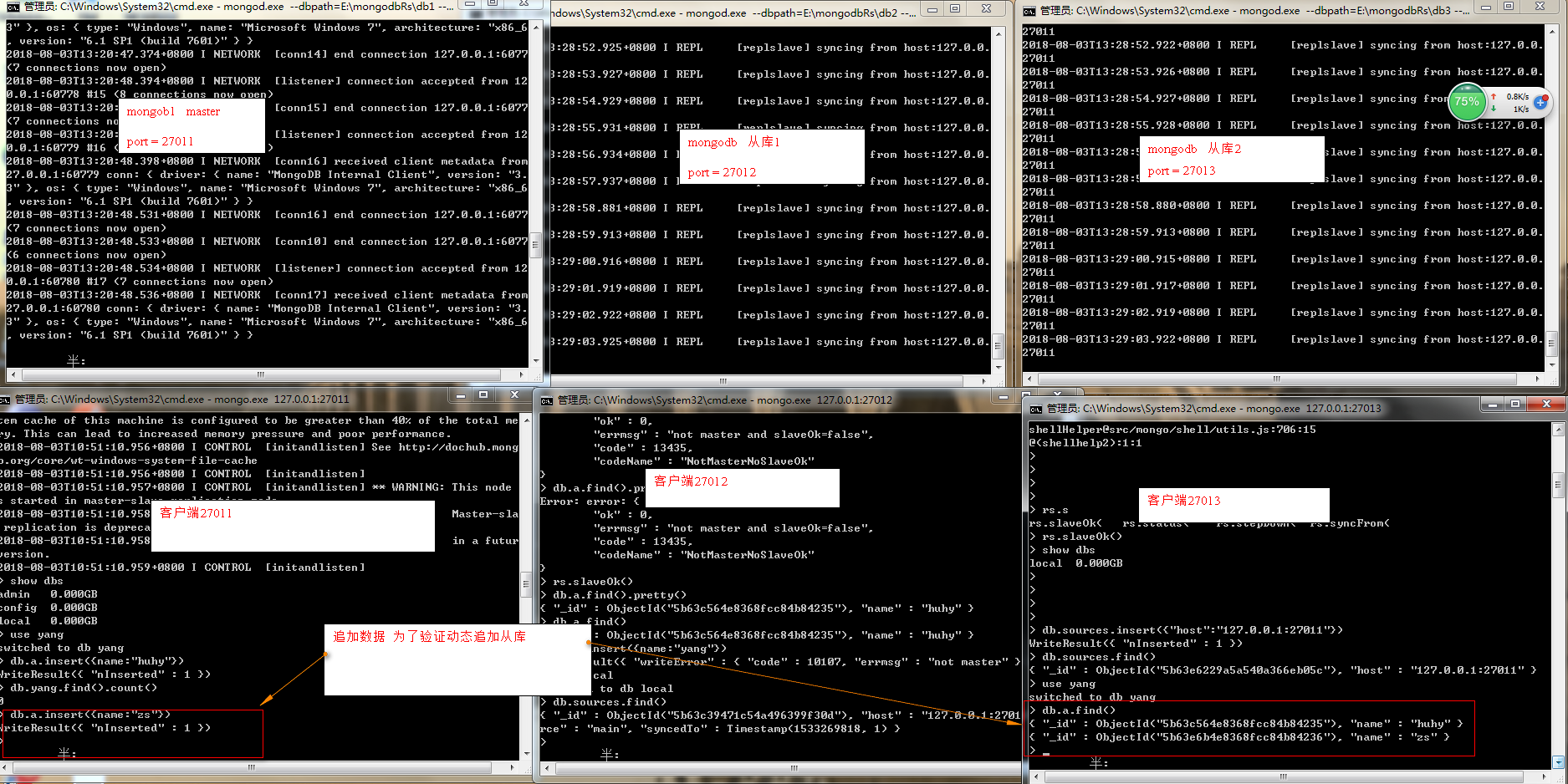 上面介绍的是在mongodb启动的时候,就知道主数据是哪个,下面我来说一种动态追加的方式: