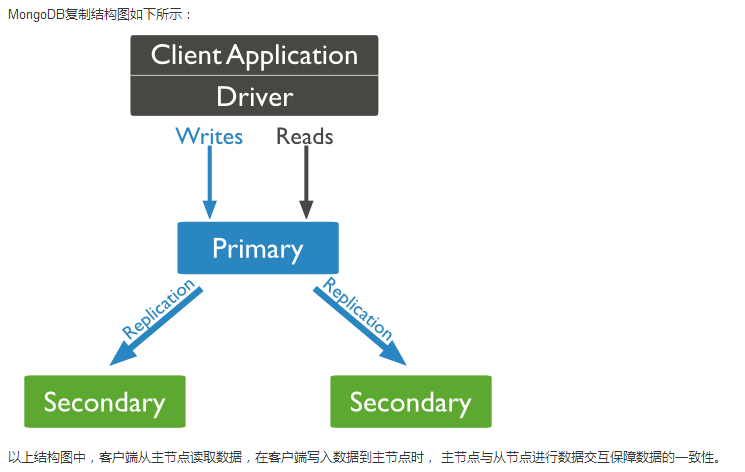 mongodb的复制至少需要两个节点。其中一个是主节点,负责处理客户端请求,其余的都是从节点,负责复制主节点上的数据。