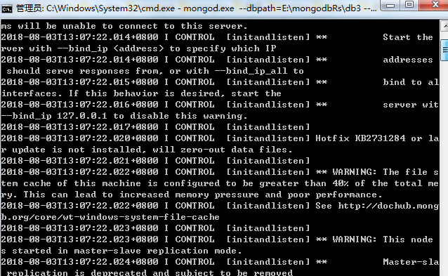 mongod.exe --port 27013 --dbpath=E:\mongodbRs\db3 --replSet rs0