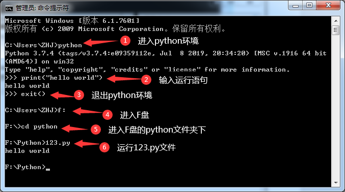 1、在解释器下写hello world程序运行,与运行外部文件方法