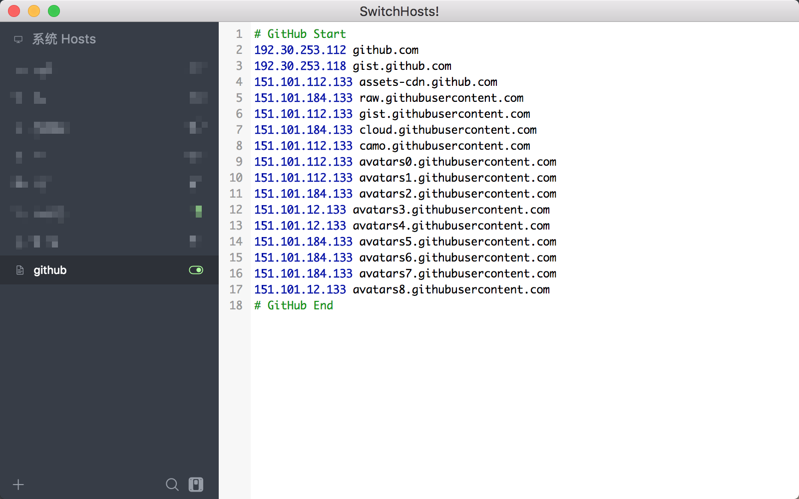最麻烦的方式就是去手动修改 host 文件,最简单的方式就是下载 Switch Host 软件进行 host 修改,跨平台,因为 hosts 文件每日都会自动更新,所以需要本地的 hosts 也能自动更新, 好在 SwitchHosts 提供了远程 hosts 的功能。