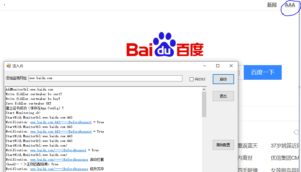 下面是一个注入JS的工具,使用Fiddlercore完成,支持HTTPS网页。