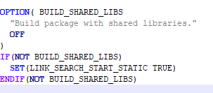 - 如果想生成静态库.a,需要打开assimp/CMakeList.txt,将BUILD_SHARED_LIBS关掉,并增加下面三行,然后重复上面步骤。