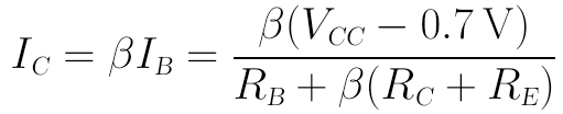 若BJT晶体管工作于放大区,可得输出静态工作电流为IC为: