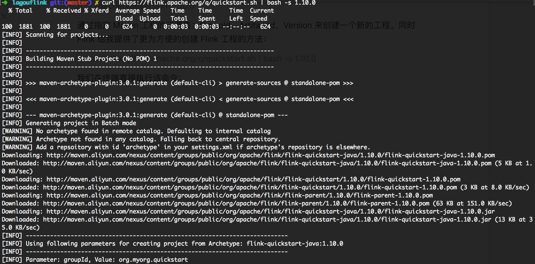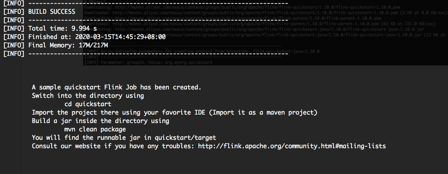 curl https://flink.apache.org/q/quickstart.sh | bash -s 1.10.0