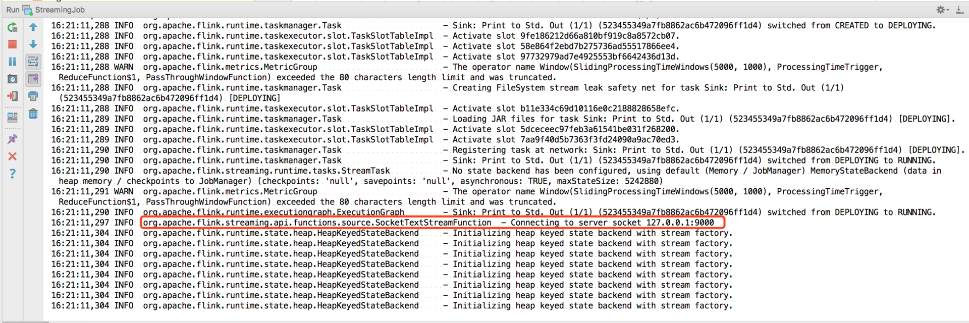 DataStream<String> text = env.socketTextStream("127.0.0.1", 9000, "\n");