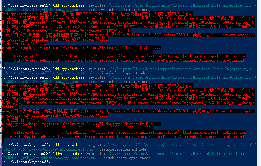 我尝试过重新注册那些注册表啥的,也重装了应用商店,重装纸牌,重启电脑,重置应用啥的。重启服务啥的。改虚拟内存,巴拉巴拉我都记不清了。