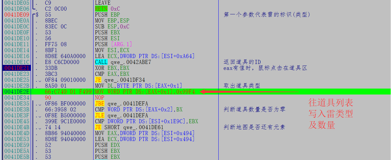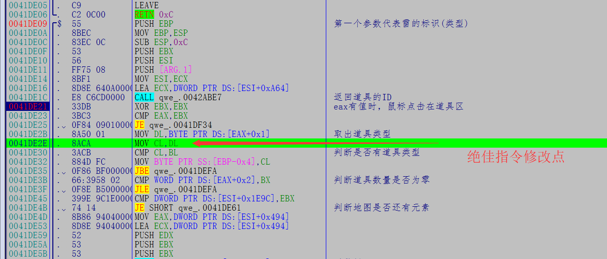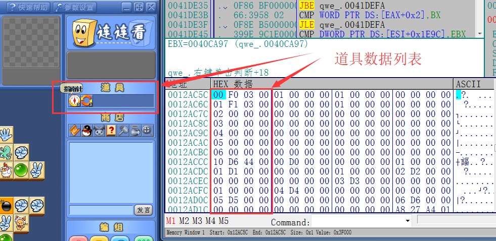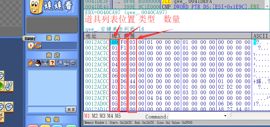 在道具数据列表 下硬件写入断点,回溯分析到 道具判断的地方。