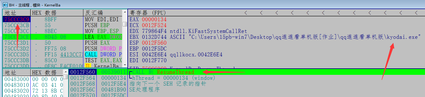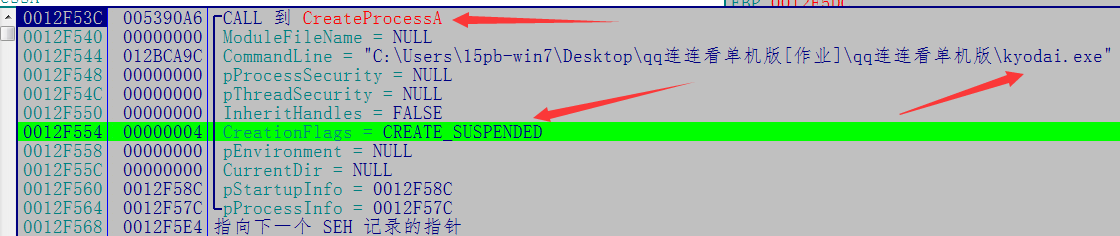 查看堆栈信息,发现kyodai.exe进程在创建时被挂起