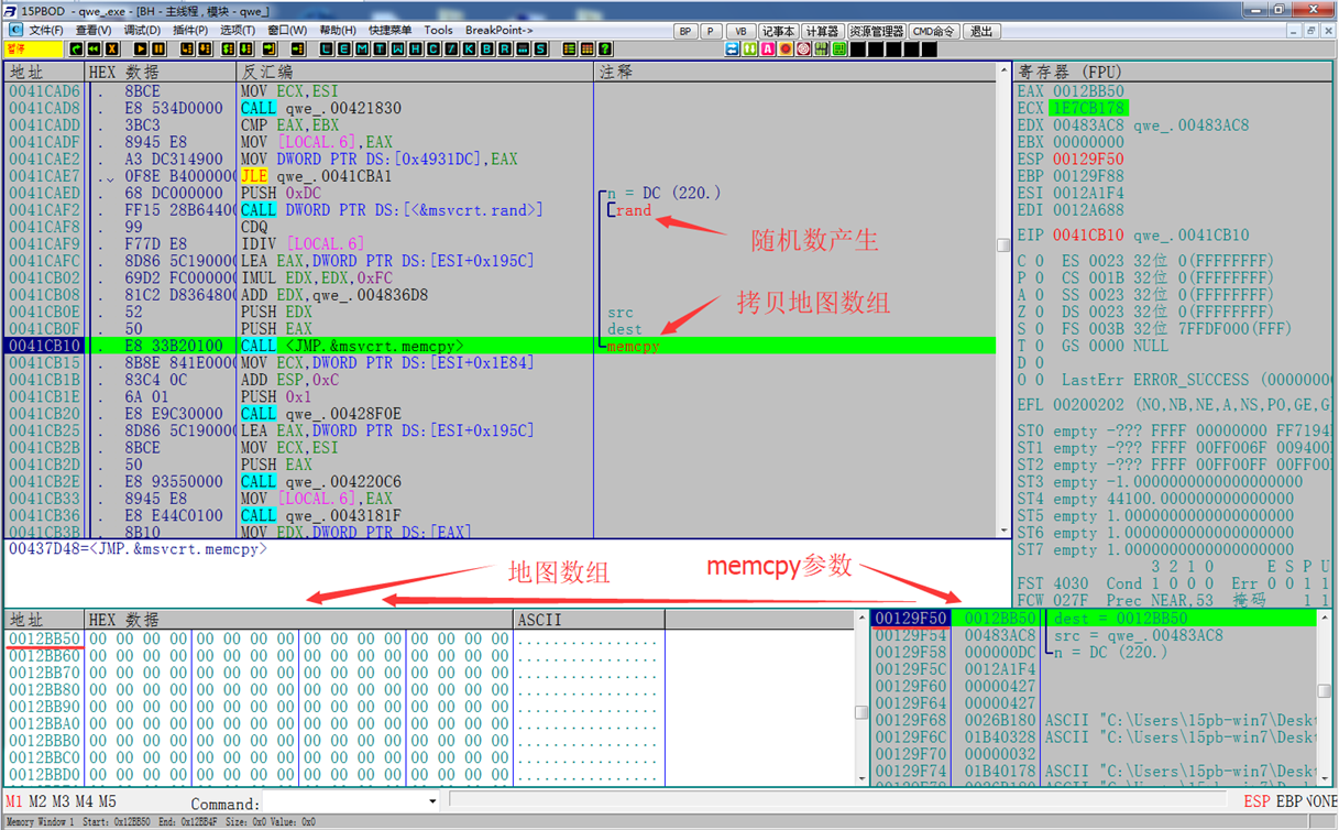猜测地图数组需要随机初始化,在OD下API断点:rand