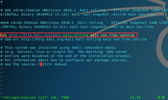 kali官方的更新源:图中的kali-rolling是kali目前最新的代号,kali有两个代号(codename):sana和kali-rolling;