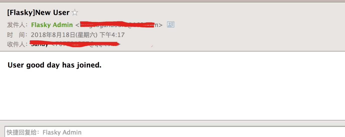app.config['FLASKY_MAIL_SENDER'] = 'Flasky Admin <xxxxx@163.com>'