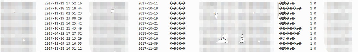 代码修改就是这些,我们可以发现代码中解析文件流都是采用UTF-8,如果生成的日志是其他编码就会出现乱码的情况,所以需要在读取文件的地方指定日志文件编码(还有一种思路就是Log4j写日志时候就指定编码,尝试没有成功就采用了现在的方式),来张前后对比图(对于已经写入数据库的日志,中文乱码问题无法解决,因为写入数据库前读取文件的方法不支持中文,修改代码之后入数据库的日志可以支持中文,另外代码中的GBK可以根据日志编码更换)