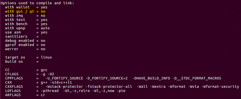 因为我们研究的是核心代码部分,故编译命令如下:(禁用钱包、GUI)