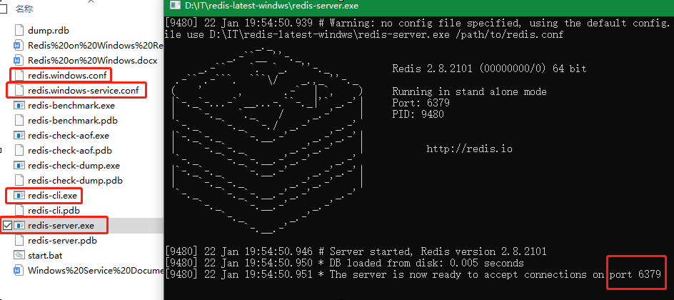 解压完成后我们来开启Redis数据库,Redis数据库的默认端口是6379,如果已经被其他应用程序占用,请自行修改redis.windows.conf配置文件。