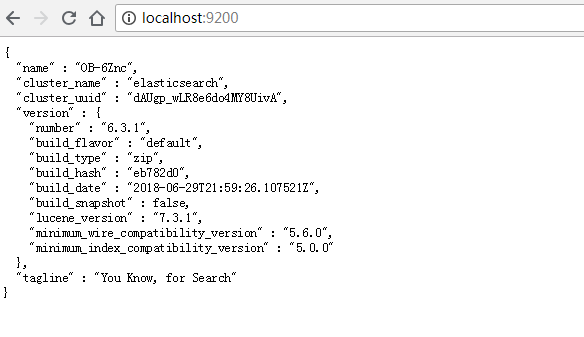 3,打开浏览器,输入 http://localhost:9200 ,显式以下画面,说明ES安装成功。