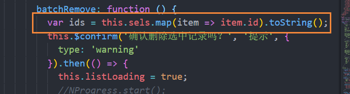创建一个ids数组,并将被选中的项的id填入进去,并化为字符串形式,发送给mock.js中的batchRemoveUser()进行处理